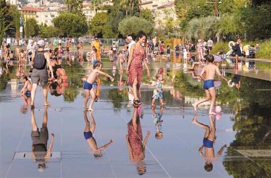 ■7月13日,人们在法国尼斯一处喷泉消暑。新华社发 |