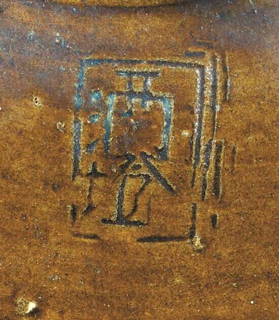 ■2021年8月13日在文头岭窑址采集的“何深郡”印文酱釉陶罐残片 |