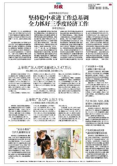 同比增长4.9%,扣除价格因素,实际增长2.7% 新快报讯 记者王彤报道 7月16日,国家统计局广东调查总队在官网发布了今年上半年广东居民收入和消费支出情况。上半年,广东居民人均可支配收入