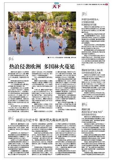 据新华社电 截至15日,欧洲西部多国连遭“炙烤”五天,法国、葡萄牙、西班牙等国接连发生林火火情,上万人被迫撤离,大量旅客假日泡汤。 欧洲联盟先前呼吁成员国采取预防措施,应对今夏极端天气。