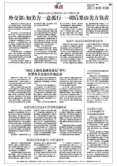 据新华社电 国台办发言人朱凤莲19日应询指出,关于佩洛西计划窜访中国台湾地区,我们已多次表明严正立场。我们坚决反对美台之间任何形式的官方往来,坚决反对佩洛西窜访台湾。美国一些国会议员一段时间来在