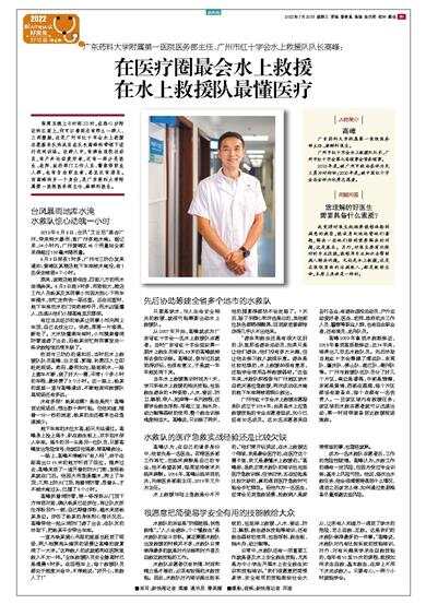 广东药科大学附属第一医院医务部主任、广州市红十字会水上救援队队长高峰:在医疗圈最会水上救援 在水上救援队最懂医疗
