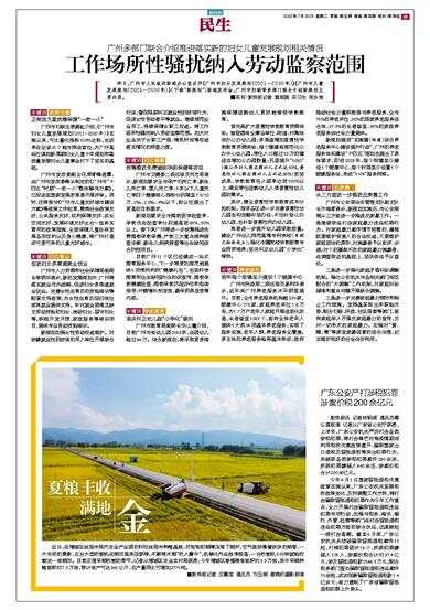 近日,在增城区丝苗米现代农业产业园的科旺丝苗米种植基地,沉甸甸的稻穗压弯了稻杆,空气里弥漫着淡淡的稻香,一片丰收的景象,五台大型收割机在稻田里来回穿梭,不断将水稻“收入囊中”,机械化作业效率极高