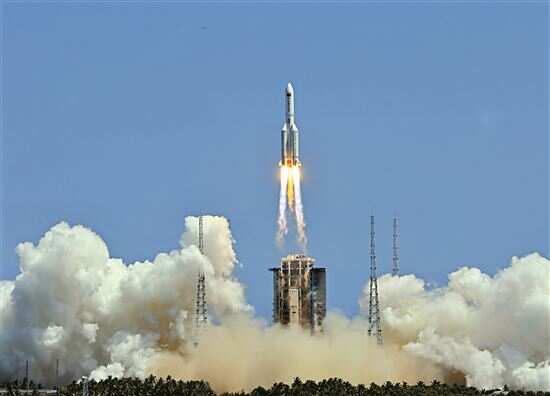 ■搭载问天实验舱的长征五号B遥三运载火箭发射成功。新华社发 |