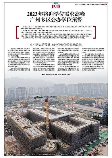 2023年将迎学位需求高峰 广州多区公办学位预警