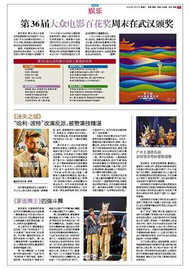 新快报讯 第36届大众电影百花奖颁奖典礼系列活动于7月28日至7月30日在湖北武汉举行。7月30日晚,颁奖典礼将现场投票表决决出本届百花奖所有奖项。 据悉,本届颁奖典礼系列活动在武汉举办期