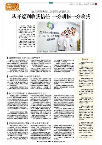 南方医科大学口腔医院盘福院区: 2021年5月底,南方医科大学口腔医院(广东省口腔医院)总院(简称“南口”)修复科主任高海接受医院任命,出任盘福院区党支部书记、主任一职。 2021年