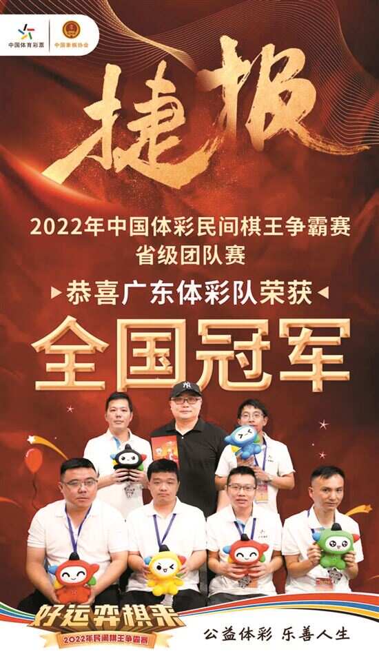 以3胜1和、总分7∶1的成绩战胜广西队 新快报讯 记者陆妍思 通讯员粤体彩报道 8月6日,“好运‘弈棋’来”2022年中国体育彩票全国象棋民间棋王争霸赛省级团队网络赛,迎来收官之战。经过一个下午的激烈对决,广东体彩队以3胜1和、总分7∶1战胜广西队,勇夺首届省级团队赛的全国冠军。 8支队伍争夺全国冠军 本次省级团队网络赛第二阶段淘汰赛共迎来8支队伍进行较量,分别是浙江、广东、吉林、天津、宁夏、广西、江苏、黑龙江8支省级体彩代表队。8支队伍通过单败淘汰赛制,选拔出省级团队赛的全国冠军。广东体彩队队员由朱少钧、梁运龙、蔡佑广、黄文俊、郑鸿标、黎铎组成,六人是目前省内象棋业余棋手中排前几名的好手,久经沙场、颇有实力,皆有“广东十虎”称号。 在第一轮的比拼中,广东队派出四位队员以2胜1和1负的成绩战胜对手,成功晋级四强;在第二轮的4进2半决赛中,广东体彩队以2胜2和,6:2的成绩率先闯入决赛,迎来与广西体彩队的巅峰对决;第三轮的终极对决,广东体彩队强阵出击:第一台蔡佑广、第二台黄文俊、第三台梁运龙、第四台朱少钧,四名队员发挥出色,以3胜1和、总分7∶1,获得全国冠军。 广东体彩队夺冠后,李鸿嘉教练表示,他一直对这支队伍很有信心,队员们的状态都很不错,在比赛中全神贯注、全力以赴、愈战愈勇,能够拿到冠军,是意料之中的事情。 广东报名人数超2000人 广东体彩队能够获得首届民间棋王争霸赛网络团队赛的冠军,具有重要的里程碑意义。“很开心能够获得本次冠军,大家都发挥得很出色,感谢所有支持我们团队的朋友,我们会再接再厉,再创更好的成绩。”队员郑鸿标如是说。 本轮淘汰赛依旧设在汕尾市的4413013034体彩实体店,该实体店是五星级体彩实体店,民间棋王争霸赛个人赛汕尾赛区的赛事经常在这里举办,店内有专门象棋对弈角,象棋文化氛围浓厚。 为深入推动全民健身、进一步弘扬中华民族悠久的象棋文化,中国体育彩票持续助力全国象棋民间棋王争霸赛,致力于为普通棋迷打造一个接地气的赛事平台。自2019年中国体育彩票民间棋王争霸赛启动以来,至今已举办了三届。在今年的比赛中,广东全省共有400余家体彩实体店设置了比赛点,吸引了不少象棋爱好者积极参赛。截至7月31日,通过“好运弈棋来”线上小程序,报名人数累计超2000人次,参加比赛场次达4万余场。 2022年民间棋王争霸赛广东赛区的海选活动将持续到8月31日。不仅能在实体店内酣畅淋漓地下棋,还有机会赢取丰厚礼品。
