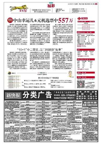 新快报讯 记者陆妍思 通讯员梁一鸣报道 双色球第22081期开奖中,江门除了中出全省唯一1注918万元头奖外,还中出1注14万元二等奖。该二等奖中奖彩票是一张420元自选“10+1”复式票,由蓬
