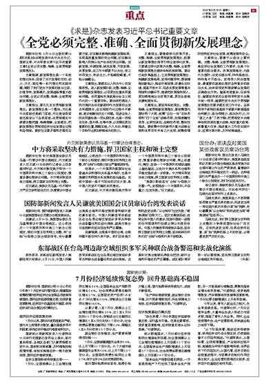《求是》杂志发表习近平总书记重要文章 据新华社电 8月16日出版的第16期《求是》杂志将发表中共中央总书记、国家主席、中央军委主席习近平的重要文章《全党必须完整、准确、全面贯彻新发展理念》