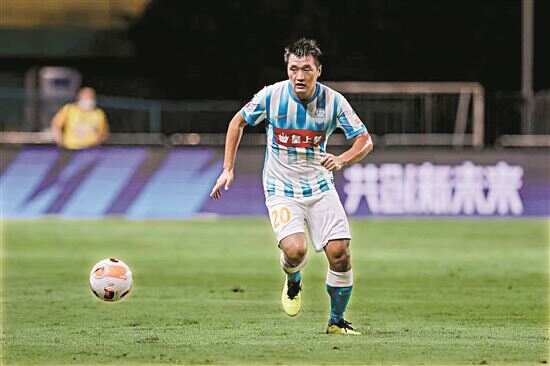 ■唐淼代表广州城首发出场。黎江文/图 |