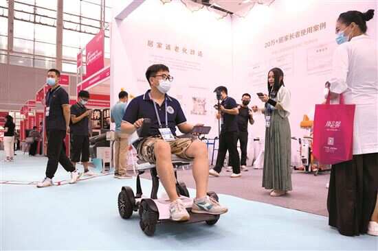 ■老博会上参展的一键式老年代步车。 |