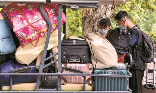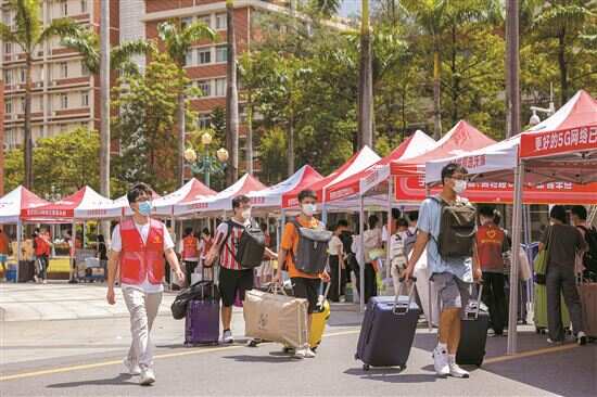 ■在暨大石牌校区,不少学生拖着行李来来往往。 |