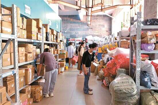 ■暨大石牌校区的快递网点,快件已经堆积如山。 |