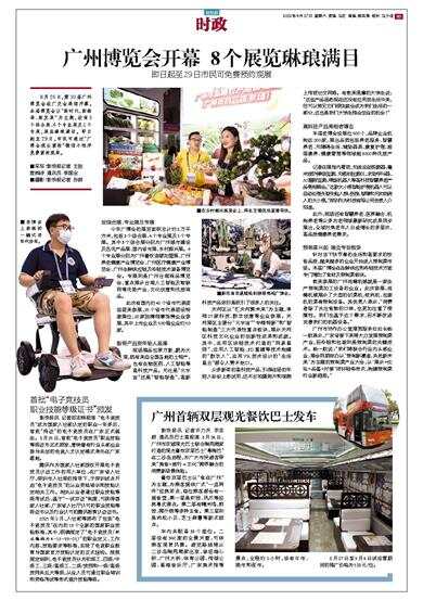 新快报讯 记者许力夫 毕志毅 通讯员巴士宣报道 8月26日,广州市双城观光巴士联合陶苑酒家打造的观光餐饮双层巴士“粤陶巴”在二沙岛启程,为广大市民游客带来“美食+旅行+文化”跨界融合的消费新场景