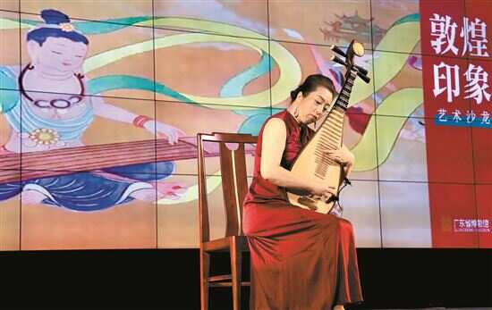 新快报讯 记者黄闻禹 夏世焱报道 在这个月色如水的夏夜,观众仿佛置身于广袤而神秘的大漠,共同聆听一支西风与驼铃的歌谣,看着眼前黄沙与明月的绘卷缓缓展开……8月26日晚,广东省博物馆(简称“粤博”)举行“敦煌印象——艺术沙龙”主题活动,这也是“2022年暑期博物馆之夜”的收官之作。 粤博在“丝路光华:粤陇文物精品联展”闭幕前夕推出“敦煌印象——艺术沙龙”,带领观众领略敦煌的音乐舞蹈艺术之美。本次活动邀请了多位艺术家,从音乐、舞蹈和绘画三方面诠释敦煌,让现场观众得以全方位、多角度地理解敦煌、感受敦煌,并构建一个立体、丰满的敦煌印象,令丝路艺术光华再现。