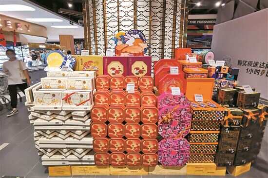 ■中秋节快到了,各种包装的月饼已经放上货架。新快报记者 李小萌/摄 |