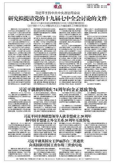 研究拟提请党的十九届七中全会讨论的文件
