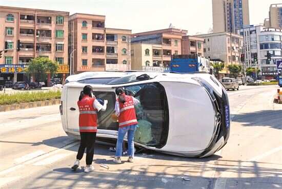 新快报讯 记者杨英杰 通讯员吴婉珊报道 9月13日11时50分,横沥镇三名专职安全员如常地开展日常安全巡查工作,刚检查完企业,在行经月塘路口处,突然从右前方传来一声巨响,一辆白色轿车发生交通事故侧翻倒地,车身还在翻转。面对这突如其来的状况,陈冠东、丁雪怡、谭嘉瑜三名专职安全员立刻上前救援,并将车上的司机成功抢救出来。 车祸发生后,专职安全员将巡查车停在事故车辆后方,开启双闪灯,提醒后方车辆注意避让,并立即下车前往翻转的白色轿车处,一边拨打122报警,一边与附近前来帮忙的热心市民一起开展救援,他们徒手用力扳倒碎裂的挡风玻璃,将车上的司机抢救出来。所幸司机只是皮外伤,待简单处理完伤口后,专职安全员还协助受伤司机联系保险公司,继续留在现场疏导过往车辆和围观群众,直至交警到场。 三名专职安全员在群众处于危难之时,第一时间伸出援手,让事故得到及时处置,用爱心暖民心,用真情办实事,诠释为民服务的忠诚担当。
