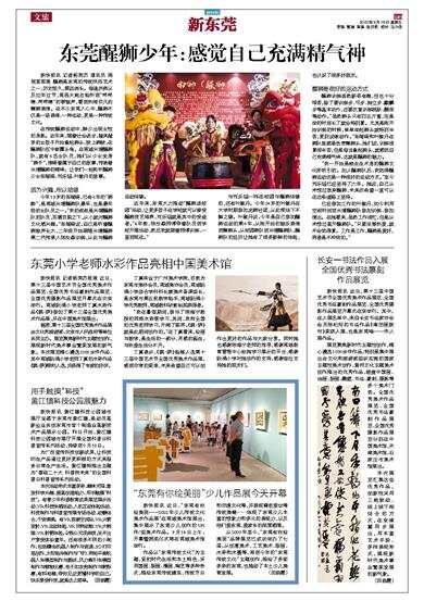 新快报讯 记者杨英杰 通讯员 莞城宣报道 醒狮是东莞的传统民俗艺术之一,历史悠久,源远流长。每逢庆典以及过年过节,莞邑大地总能听到“咚咚锵、咚咚锵”的锣鼓声,看到热闹非凡的舞狮表演。在不少东莞人