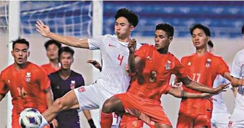 ■中国小将与缅甸队在比赛中争夺。 |