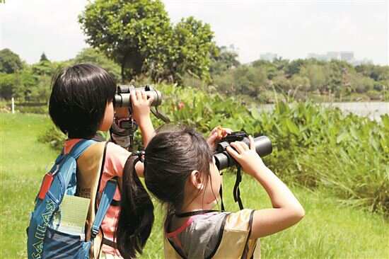 ■海珠湿地逐步形成五位一体的自然教育“海珠模式”。图为大小朋友体验大自然的乐趣。 |