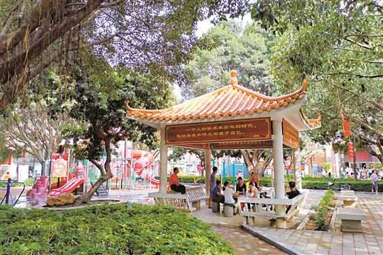■村民在小公园里怡然自乐。 |