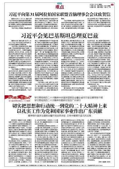 切实把思想和行动统一到党的二十大精神上来 以扎实工作为党和国家事业作出广东贡献