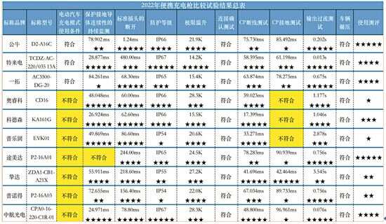 新能源汽车便携式充电枪成车主“新宠”,广东省消委会指导测评: 新快报讯 记者王彤 通讯员粤消宣报道 近年来,随着新能源汽车快速发展和普及,可随身携带、只要有标准插座就能为“爱车”充电的便携式充电枪进入消费者视野。为帮助消费者正确选购和使用,在广东省消费者委员会的指导下,佛山市消费者委员会委托专业检测机构开展了新能源汽车便携式充电枪比较试验工作。工作人员以普通消费者的身份从电商平台购入10个品牌10款样品,并检测了10个项目,结果显示(结果仅对样品负责),共有3款样品符合所有检测项目的标准要求。据悉,这些样品单价从799元到1380元不等,基本涵盖了市场上主流的品牌。 充电模式使用条件项目应重点关注 在充电模式使用条件项目检测中,奥睿科CD16、科德森KA161G、普乐固EVK01、途美达P2-16A01、挚达ZDA1-CB1-A21X、普诺得P2-16A03、中航光电CPA0-16-220-C1R-01(L=5000)共7款样品不符合“充电模式使用条件”标准要求。电动汽车充电模式使用条件是一项考核产品的整体结构模式是否合理,产品的供电插头选用是否正确,设计的额定输出电流是否与选用的供电插头相匹配的一项指标。如果产品的额定输出电流过大,不满足标准的要求值,可能导致产品使用寿命降低、电源侧供电插头被烧毁,甚至还可能会因过热导致起火,存在安全风险,因此提醒消费者在选购时对该项目进行重点关注。 在CP接地测试项目检测中,有3款样品CP接地测试不符合标准要求,分别是:奥睿科CD16、科德森KA161G、普乐固EVK01。CP接地测试目的在于验证便携式充电枪在充电前和充电中发生CP接地时能否识别故障以及故障保护的时间。如果产品在出该项异常后仍持续充电,容易导致危险发生,严重的情况下会导致着火后果。 在保护接地导体连续性项目检测中,仅有途美达P2-16A01一款样品不符合保护接地导体连续性的持续监测标准要求,其他9款样品全部符合。通过保护接地导体连续性测试,可以获取产品在充电过程中失去保护接地导体电气连续性的情况下,自动断电的时间参数。若充电过程出现该异常,便携式充电枪响应越迅速,代表该产品的安全系数越高。 在标准插头的断开、防护等级、极限温升、连接确认测试、CP断线测试、输出过流测试、车辆碾压等7个项目检测中,10款样品全部符合要求。 半数的样品在使用测评环节获好评 为了更直观地反映出10款样品的用户体验情况,本次测试共邀请20名消费者作为体验测评人员分别对10款样品的产品的标识及说明的易读性、操作简易性、产品的包装和收纳携带、质感和外观设计、充电口插拔体验等5个项目进行实际操作使用及评分,结果显示:“公牛”“途美达”“特来电”“一拓”“中航光电”5个品牌的样品在使用测评环节中更受测评人员好评。 综合各项指标,依据评估系统中各指标的占比,这三款产品表现最为优秀:公牛D2-A16C、特来电TCDZ-AC-220/035 13A、一拓AC3500-DG-20,它们符合所有检测项目的标准要求。 根据比较试验结果情况,佛山市消委会向所有样品标称生产企业反馈了本次比较试验结果和征询意见,并向本次比较试验不符合标准要求的样品的购买平台和标称生产企业属地监管部门函告有关情况,建议对生产企业及相关产品加强检查监管。