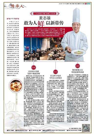 广州四季酒店中餐厅愉粤轩行政总厨 虽然已经从业30余年,但麦志雄仍对厨房里的一切保持好奇心。这一位掌管着米其林一星餐厅出品的掌门人,多年来扎根粤菜本土地区,足迹遍布江门、珠海、佛山、顺德和