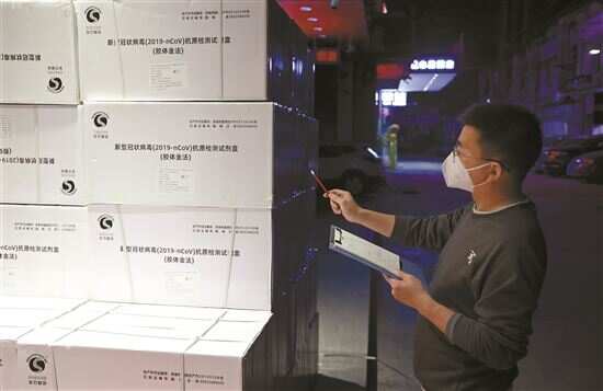 ■12月22日凌晨1点多,订购的新冠抗原检测试剂盒终于到货了,尹辉连夜拉货回来,清点数量,天一亮,就能送到订购的顾客手里。 |