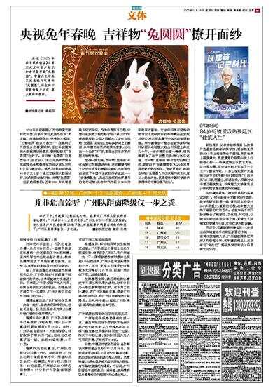 央视《2023年春节联欢晚会》日前正式发布官方标识和吉祥物形象“兔圆圆”。带着历史信息又充盈现代气息的“兔圆圆”,将在辞旧迎新的除夕之夜,跟大家拜年贺春。 ■新快报记者 梁燕芬 20