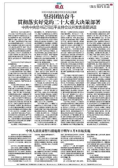中共中央政治局召开民主生活会强调 坚持团结奋斗 贯彻落实好党的二十大重大决策部署