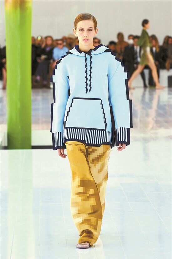 ▲Loewe整个春夏系列专注于线条、色彩与廓形,采用简化、紧凑、重构版型、像素化等设计手法构筑服装,鲜艳的色彩、超现实好玩的风格,让时装更多了些艺术和幽默。 |