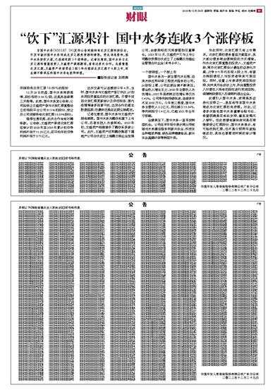 “饮下”汇源果汁 国中水务连收3个涨停板