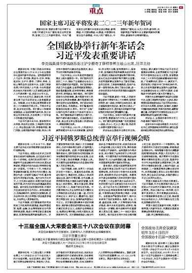 全国政协主席会议建议 明年3月4日召开全国政协十四届一次会议