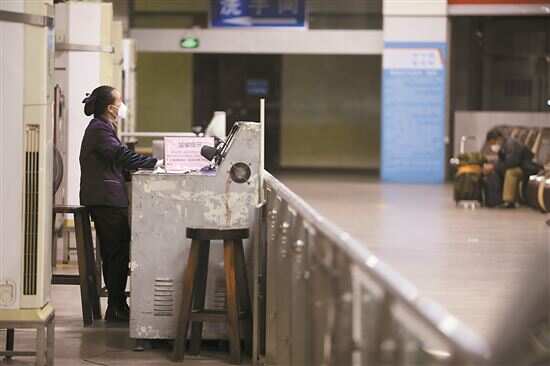 ◀杜姐在检票口等待最后一班车接走旅客。 |