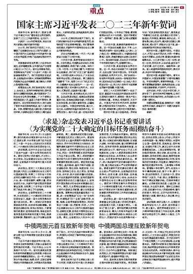 国家主席习近平发表二〇二三年新年贺词