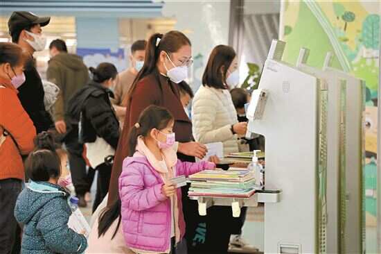 ■1月2日,在广州市图书馆,市民利用假期读书“充电”,感受书香氛围,自助借阅书籍的机器前排起了长龙。新快报记者 林里/摄