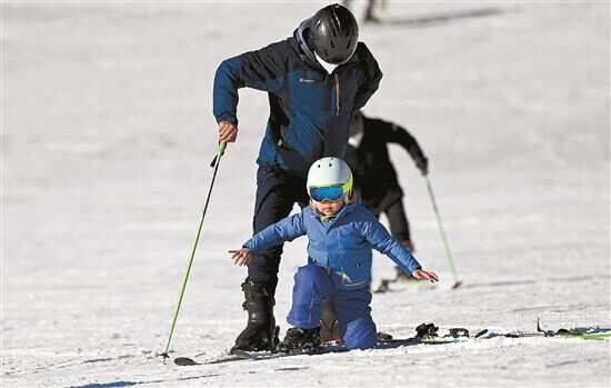 ▶在北京市延庆区石京龙滑雪场,几位小朋友拿着雪板准备乘坐魔毯。新华社发 |
