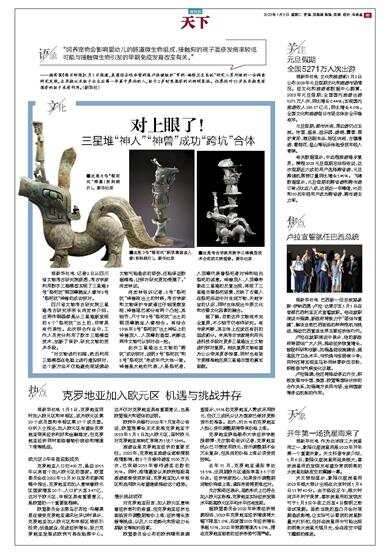 三星堆“神人”“神兽”成功“跨坑”合体 据新华社电 记者2日从四川省文物考古研究院获悉,考古学家利用数字三维模型实现了三星堆3号“祭祀坑”铜顶尊跪坐人像与8号“祭祀坑”神兽的成功拼对。