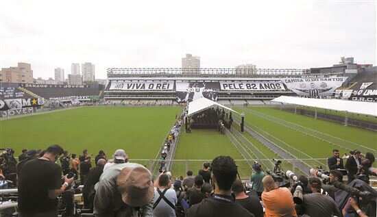 维拉贝尔米罗体育场迎回了自己的传奇—— 据新华社电 2日,维拉贝尔米罗体育场门外是一片黑白条纹的海洋。人们或是穿上印有10号的黑白竖条球衣,或是挥舞着黑白旗帜,从清晨就站在这座巴西桑托斯俱乐部主场门外,等待送别一位老朋友。 66年前,一个出身贫寒的天才少年在这片绿茵场上一鸣惊人,在效力桑托斯队的18年间,他带领球队在维拉贝尔米罗体育场战胜无数强敌,用自己名字——贝利,命名了一个足球时代。 今天,维拉贝尔米罗体育场迎回了自己的传奇——永远定格在82岁的贝利。世界杯历史上最年轻进球者、最年轻世界杯冠军、三次世界杯冠军、1281个进球……世界通过各种纪录记住了贝利。 在维拉贝尔米罗体育场“停留”一天后,贝利将最后一次穿过球迷们的呼唤声,抵达自己的长眠之所——距离维拉贝尔米罗体育场步行不到1公里的普世纪念公墓,这座矗立在海岸的洁白大楼曾获得“世界最高墓园”的称号。 为了方便球迷吊唁,贝利家人选择将他葬在1楼,但球王最初的选择是9楼,他说这是为了纪念曾经身穿9号球衣比赛的父亲,也是为了能在高处永远注视那片自己挥洒过青春的绿茵场。