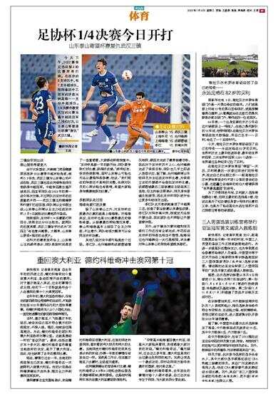 山东泰山寄望杯赛复仇武汉三镇 今天下午,2022赛季足协杯第4轮比赛即将打响。在现存的8支球队中,有7支中超球队,刚刚拿到中乙冠军的济南兴洲是唯一一支非中超球队。1/4决赛中最受关注的比赛