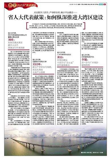 关注数字人民币、产学研协同、南沙平台建设…… 今年省政府工作报告提出纵深推进粤港澳大湾区、深圳先行示范区建设,高水平建设横琴、前海、南沙三大平台。多名省人大代表就大湾区发展提出建议,期待通