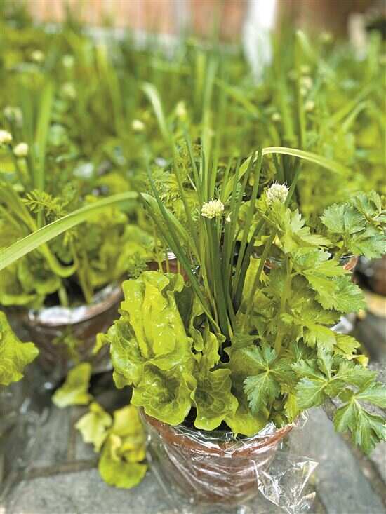 ■以生菜、芹菜、葱搭配而成的吉祥“菜花”也受欢迎。 |