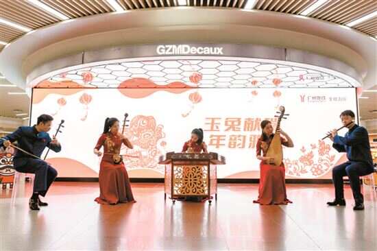 新快报讯 记者李佳文 通讯员刘昱报道 大年初一上午,《彩云追月》《步步高》《娱乐升平》等群众耳熟能详的广东音乐经典曲目在地铁公园前站站厅奏响,给节日期间出行的市民乘客带去了新春祝福、加满年味。这是广州地铁联合广东音乐曲艺团开展的“粤韵迎春·乐享全程”广东音乐新春进地铁系列惠民演出的首场活动,同时也拉开了广州地铁2023年“文化地铁 精彩旅程”系列历史文化活动的序幕。 昨日上午,广东音乐特色乐队编制“五架头”,在五位广东音乐曲艺团高水平艺术家的手中奏响,展现出广东音乐清新淡雅,玲珑细腻、亲切通俗的独特魅力,营造出喜庆祥和的新春氛围,赢得了现场听众的热烈掌声。 “粤韵迎春·乐享全程”广东音乐新春进地铁系列惠民演出将于年初一至年初六,每天上午10∶30至11∶00,分别在公园前站、陈家祠站、广州南站、广州火车站、番禺广场站、彩虹桥站6个车站轮番上演,让市民朋友们在家门口的地铁站里,就能近距离感受最地道的广东音乐文化盛宴,留下关于广州的声音记忆。