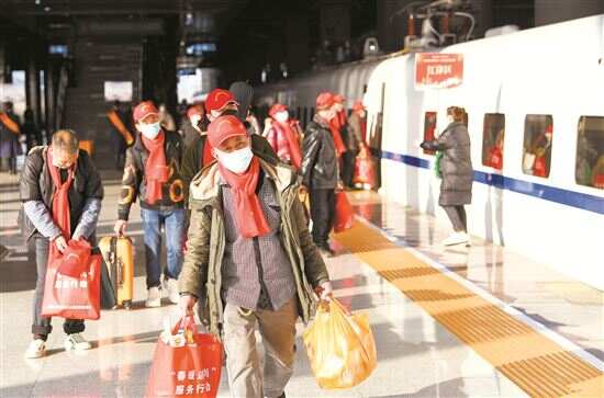 ■1月30日,由重庆西开往广州南的D4881次务工专列顺利开出,来自川渝两地的约890名务工人员踏上返岗之路,这是2023年从重庆开行的首趟务工定制专列。新华社发
