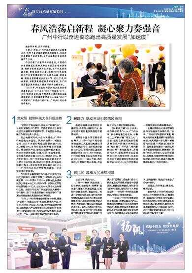 广州中行以奋进姿态跑出高质量发展“加速度” 起步即冲刺、实干开新局。 日前,广东省、广州市高质量发展大会隆重召开,吹响了奋进高质量发展的集结号,为经济发展擘画了奋进蓝图,也为金融服务
