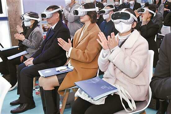■纳税人代表佩戴VR眼镜体验广州市税务局元宇宙办税厅。 |