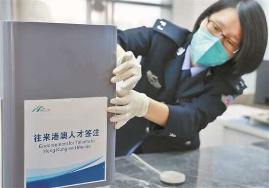 ■2月20日,往来港澳人才签注首发仪式在广州南沙区举行,广州市6名科研类人才首批获发往来港澳人才签注。新快报记者 李小萌/摄